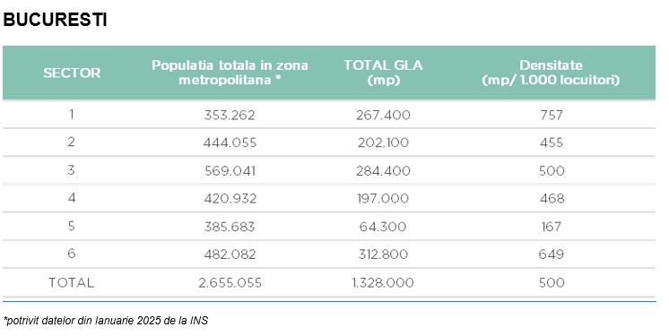La nivel national densitatea spatiilor de retail a crescut la 248 metri patrati/ 1.000 locuitori, suprafata care se plaseaza printre cele mai reduse din Europa.