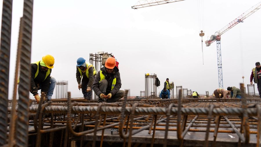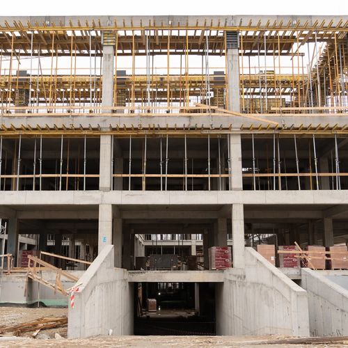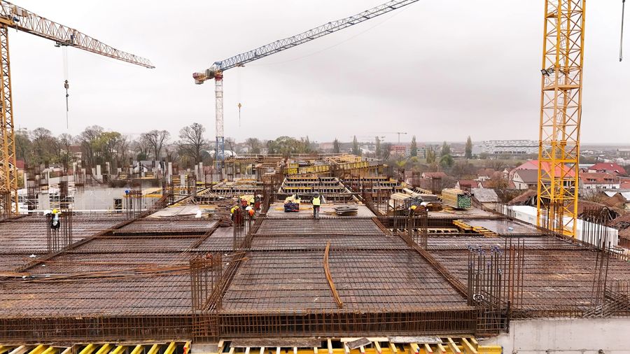 • La Corpul C3 (cel mai avansat) se armeaza grinzile de la etajul 2, urmand montarea structurii metalice a acoperisului;