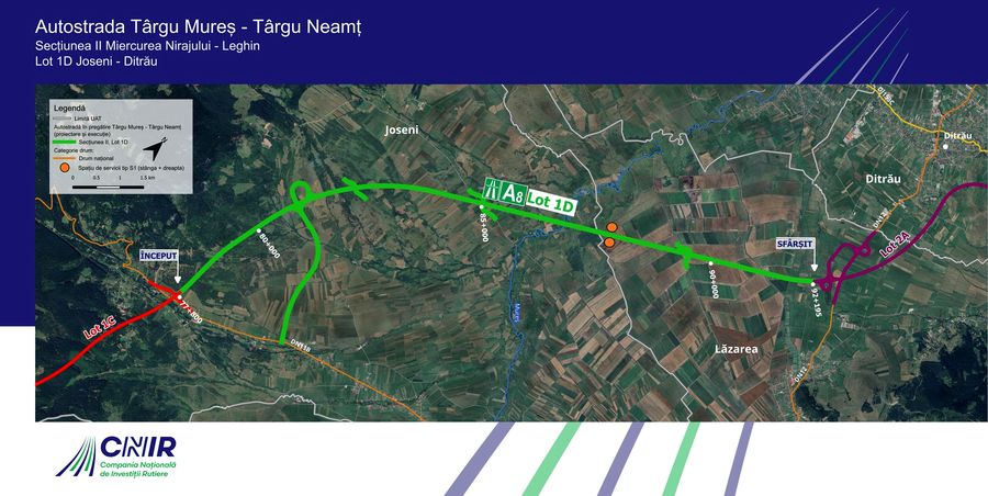 Al doilea contract semnat de CNIR este pentru lotul 1D Joseni - Ditrau, cu o lungime de 14,4 km si o valoare de 820 de milioane de lei. Constructor este o asociere de firme din Romania si Bulgaria, respectiv Danlin XXL (lider) - Groma Hold-Intertranscom Impex. Din asocierea castigatoare fac parte si companiile Damiena, Mithras Build si Consitrans (terti si subcontractanti), dar si Complexul Muzeal National Neamt si companiile Vertatel International, Eckon Cei, Terra Silva, Build Instal Electric, Alcro Trade, Danavi, Roads Design, Groma Hold Ltd., Intertranscom Impex si Via Design, ca subcontractori.