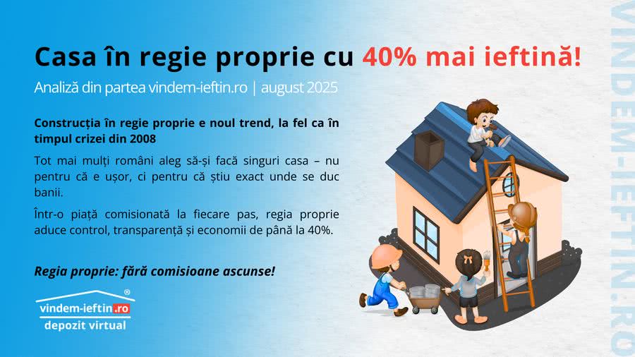 Dupa ani de boom imobiliar, in care cumpararea „la cheie” parea cea mai comoda alegere, tot mai multi romani se intorc in 2025 la o solutie cunoscuta, dar subestimata: constructia in regie proprie. Nu este o tendinta intamplatoare, ci un raspuns firesc la realitatile dure ale pietei: inflatie, cresteri de preturi la materiale, blocaje in zona publica si o lipsa acuta de incredere in „sistemul” intermediarilor.Cosmin Raileanu, fondatorul Vindem-Ieftin.ro si initiatorul retelei Depozit Virtual, observa o reconfigurare clara a comportamentului beneficiarilor: