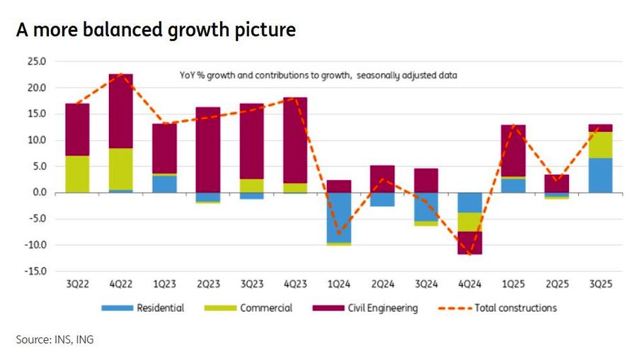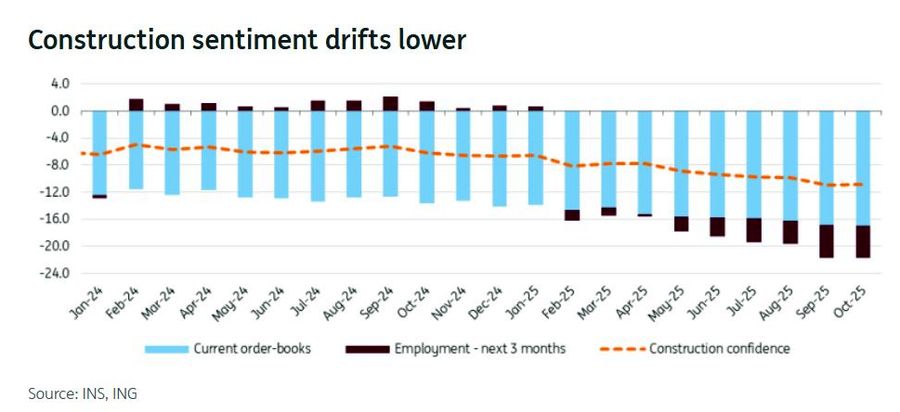 Sectorul constructiilor din Romania s-a stabilizat in 2025, iar perspectivele pentru perioada urmatoare sunt umbrite de o cerere mai slaba si de schimbarile fiscale. Infrastructura finantata din fonduri UE ramane ancora sectorului, impulsionand cresterea, in timp ce companiile se adapteaza la o piata in schimbare, subliniaza intr-un articol Valentin Tataru, economist-sef la ING Bank Romania."Dupa o contractie de aproximativ 4,9% in 2024, activitatea in constructii a crescut in 2025. Date oficiale de la Institutul National de Statistica (INS) arata ca in primele noua luni din 2025 volumul lucrarilor de constructii a crescut cu 9,2% (date ajustate sezonier) fata de aceeasi perioada a anului 2024. Aceasta evolutie a fost inregistrata la toate segmentele, inversand o parte din declinul de anul trecut", noteaza Valentin Stefan.