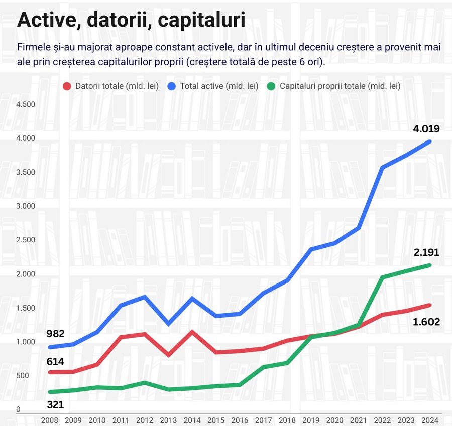 Cifra de afaceri cumulata a companiilor romanesti a crescut de la 857 miliarde lei in 2008 la 2.677 miliarde lei in 2024 - o crestere de peste 3 ori.