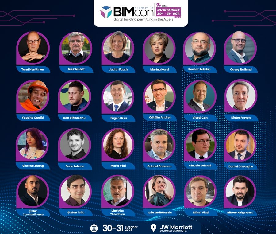 In perioada 30-31 octombrie 2025, Bucurestiul va gazdui a saptea editie a conferintei internationale BIMcon Summit, un eveniment de referinta in domeniul digitalizarii constructiilor. Organizat de BIMTECH - buildingSMART Romania, summitul se va desfasura la JW Marriott Bucharest Grand Hotel si va reuni experti globali care vor discuta, printre altele, despre cele mai recente inovatii in tehnologiile openBIM, digitalizarea autorizatiilor de constructie si standardizarea proceselor in domeniu.Potrivit organizatorilor, tema din acest an - Digital Building Permitting in the AI Era - exploreaza modul in care inteligenta artificiala transforma procesele de autorizare, eficienta proiectarii si colaborarea in mediul construit.