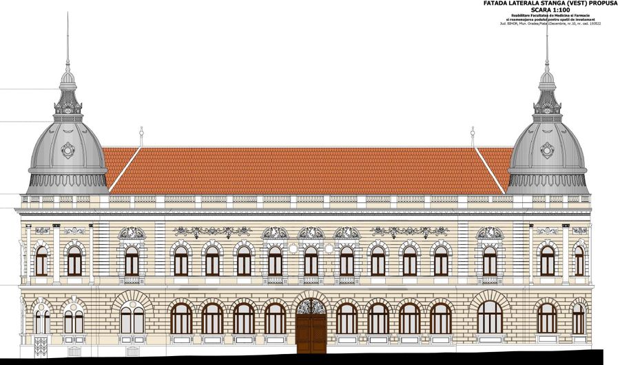 Cinci asocieri de companii au depus oferte de participare la licitatia organizata de Compania Nationala de Investitii (CNI) SA pentru atribuirea lucrarilor de proiectare, executie si asistenta tehnica pentru reabilitarea cladirii Facultatii de medicina si Farmacie din Oradea si reamenajarea podului pentru spatii de invatamant. Contractul are o valoare estimata cuprinsa intre 87 milioane de lei si 91,4 milioane de lei (fara TVA) si o perioada de implementare de 90 de luni, din care 6 luni pentru proiectare, 24 pentru executie si 60 de luni perioada de garantie.Cladirea (S+P+1E) are o vechime de peste 100 de ani si este monument istoric incadrat in clasa B si necesita interventii majore de restaurare si conservare. Constructia are o amprenta la sol 3.022 mp si o suprafata desfasurata totala de 8.004 mp.