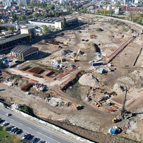 Pe santier, compania Terratest Geotehnic, lider in executia de fundatii speciale si imbunatatire a terenului, are mobilizate 8 utilaje de piloti si alte doua pentru pereti mulati. Terratest este responsabila de realizarea fundatiilor pentru acest proiect de anvergura.