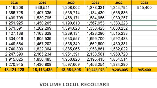 Scadedea volumului de masa lemnoasa recoltata continua in 2023,cu un volum transportat de la locul recoltarii inregistrat in SUMAL in luna ianuarie 2023 care atinge un minim al ultimilor ani, respectiv 945 000 mc fata de 1 244 000 mc in luna ianuarie din 2022.